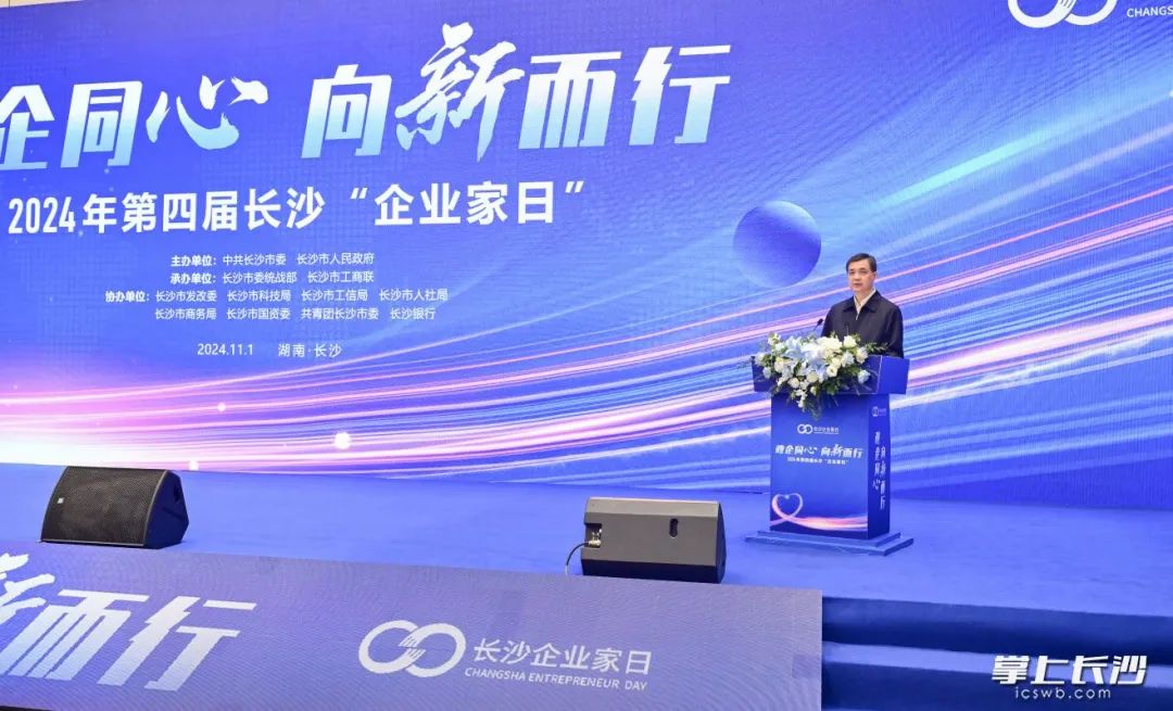 ▲周海兵出席2024年第四届长沙“企业家日”活动并讲话