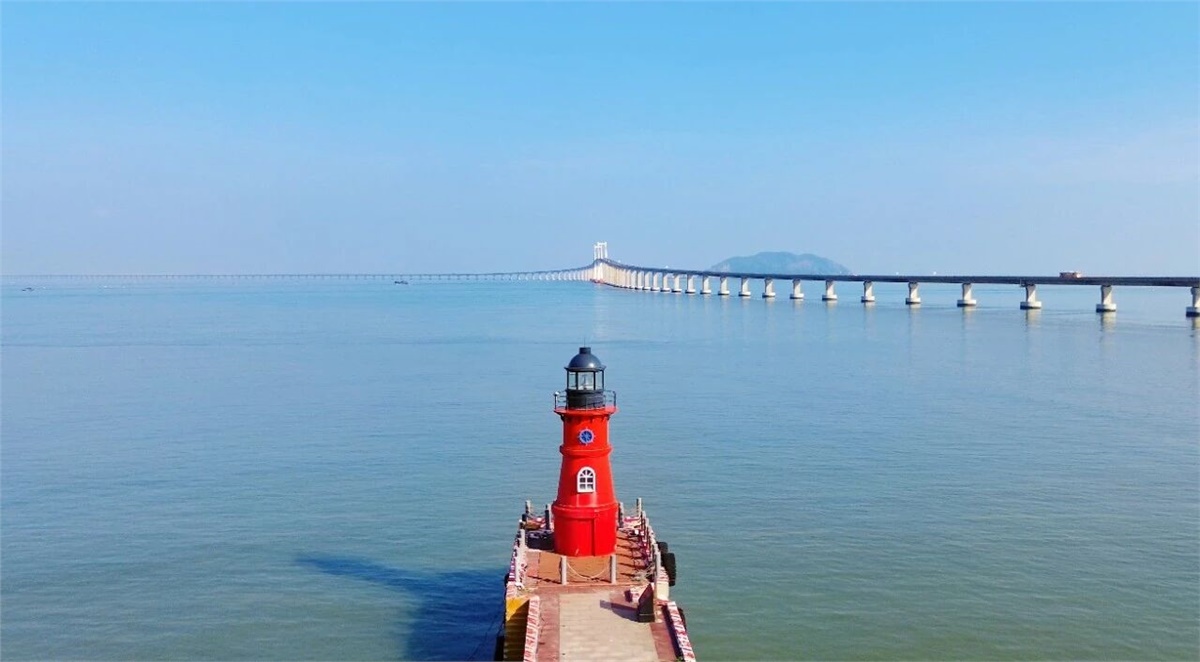 以蓝天大海和壮观的南澳大桥为背景板