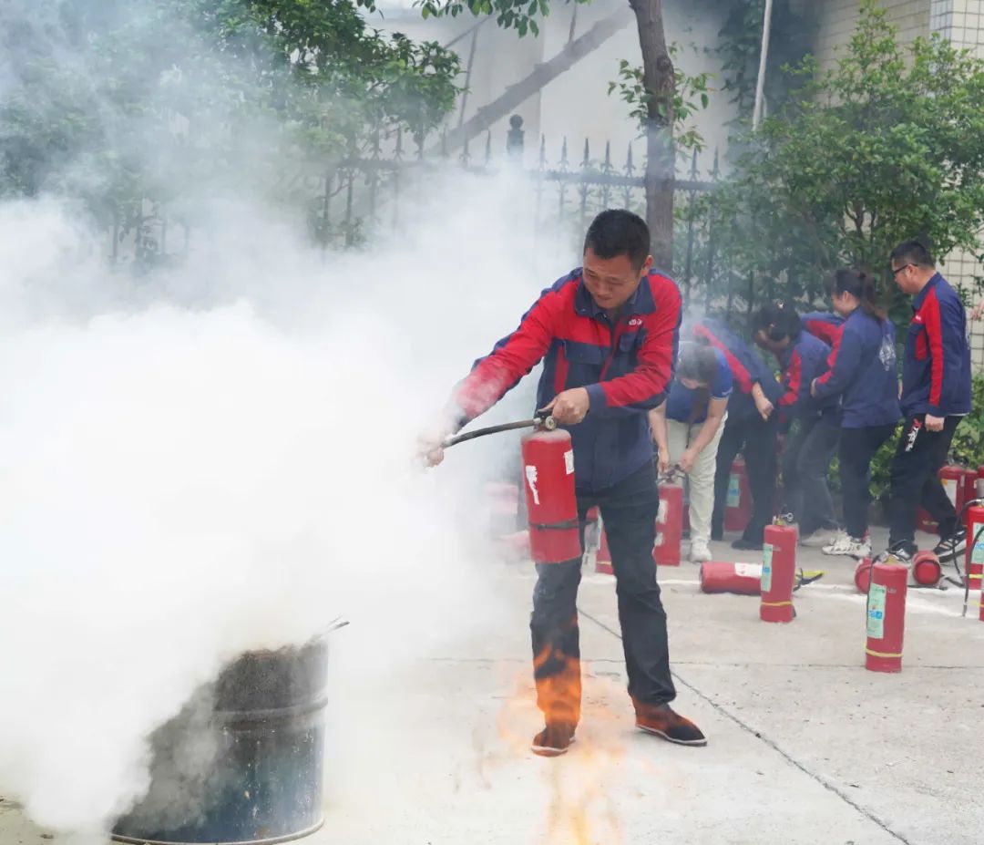 本次演练以实操为主,为确保所有员工具备基本消防能力,每一位员工都在专业消防队员的指导下,完成了使用灭火器扑灭火堆、消防水枪对接等实际操作,切实增强员工的自防自救能力。