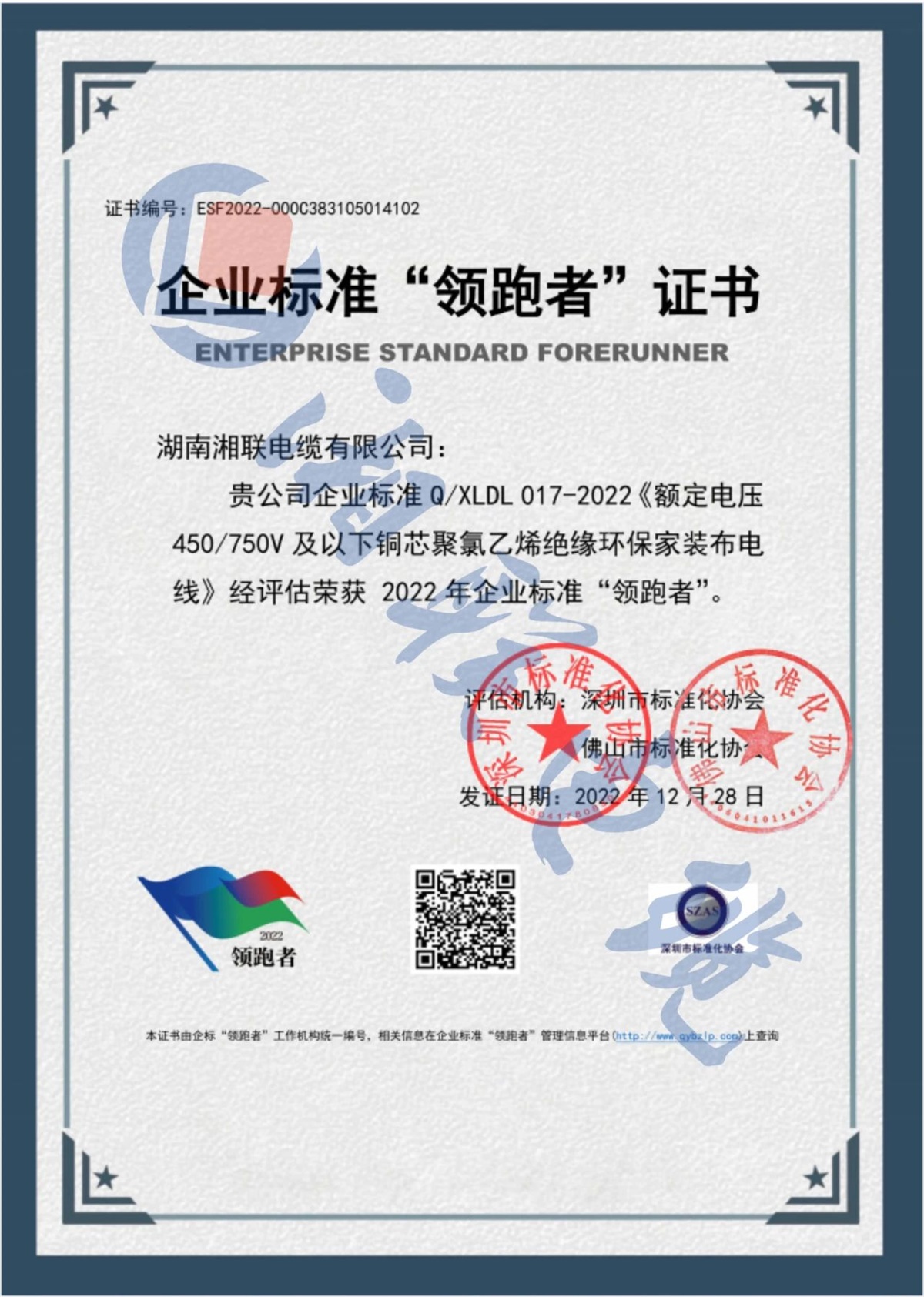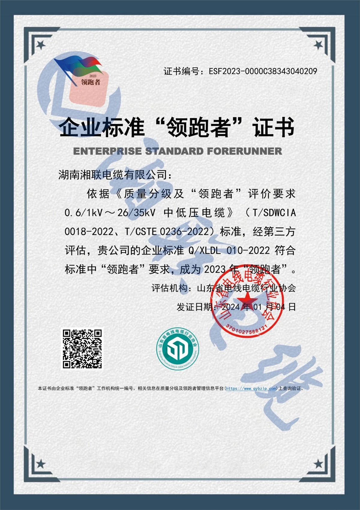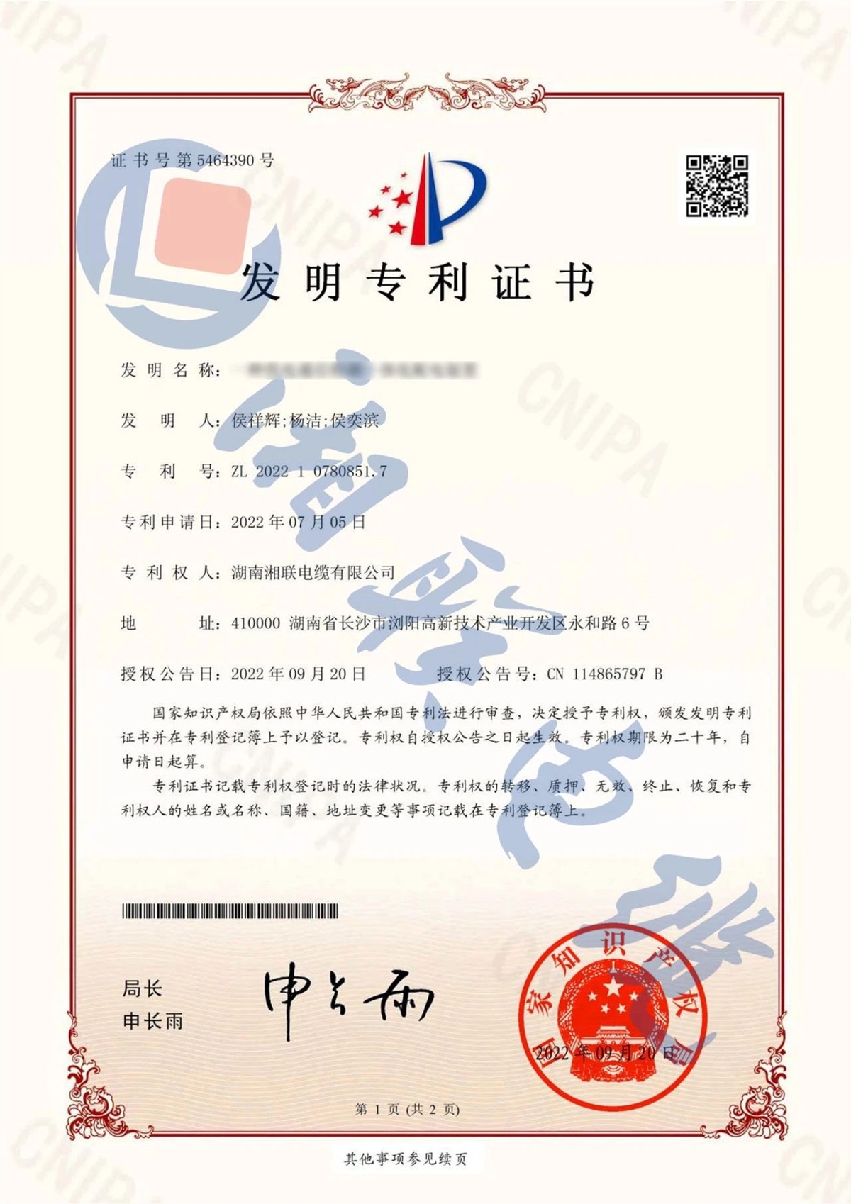自湘联电缆成立以来,公司研发了一系列具有自主产权的专利,累计申请专利50余项,多次参与编写国家标准和团体标准,多款产品企业标准获评国家“企业标准领跑者”称号,企业的技术实力和核心竞争力不断提升。2023年,公司被评为“湖南省省级企业技术中心”。