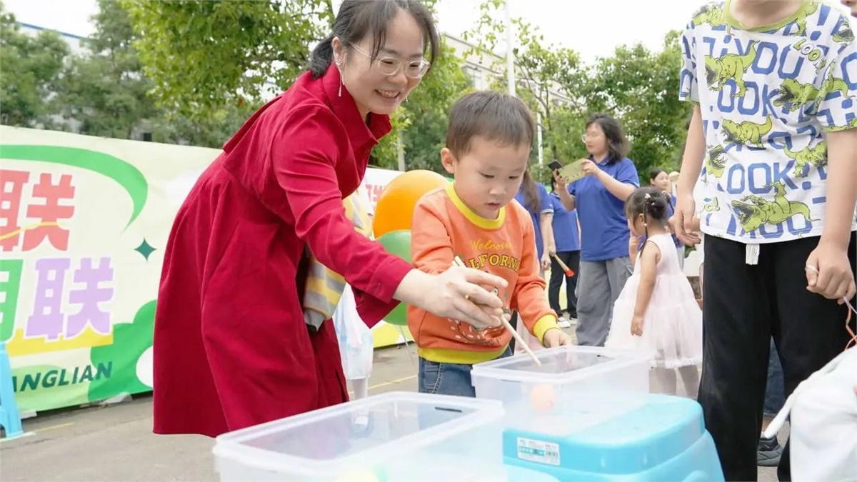 职工们陪着孩子们勇敢面对“萌鸡下蛋”“踏石竞渡”“童梦投壶”“筷运乒乓”等亲子运动挑战项目,共同协作并给予鼓励,共同打造了一段欢乐的亲子时光。趣味性的活动项目充分激发了孩子们积极挑战、团结协作的体育精神,也提高了亲子间的默契度。