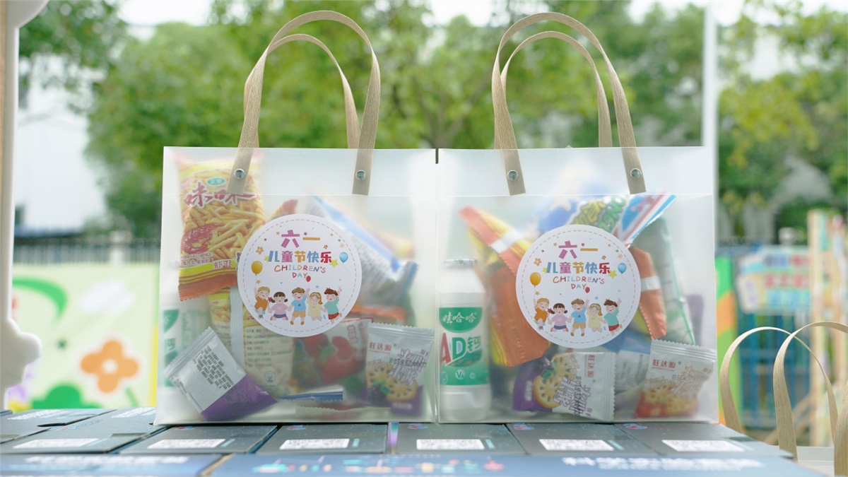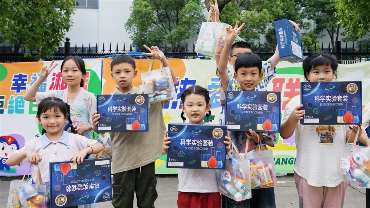 运动会后,小朋友们在“湘联宝贝欢乐集市”领取了零食礼包和科普实验套装,孩子们捧着礼物,脸上洋溢着满足与幸福。