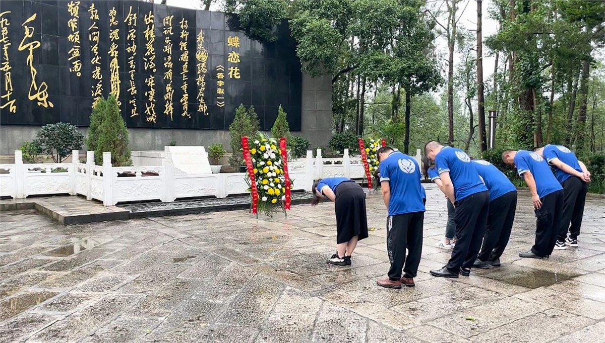 伴随着绵绵细雨,怀着崇敬的心,大家从纪念馆参观学习后,走进杨开慧烈士陵园,全体党员在杨开慧烈士墓前肃立、鞠躬,表达对“骄杨”的追思和敬仰。