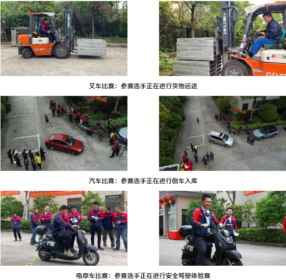 安全问题贯彻生产与生活,此次技能比武不仅包含货物运输的重要交通工具—叉车比试,还包含汽车与电摩车两项安全技能的比试。比赛现场,参赛选手们沉着冷静、动作敏捷,熟练的倒车、转弯、平稳而又快速的完成赛事规定路线、倒车入库、货物运动等项目,展示了良好的基本功和娴熟的操作技巧,赢得现场观众的连连喝彩。